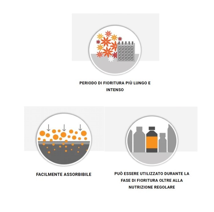 Questo stimolante organico della fioritura esercita un effetto positivo sulla predisposizione alla fioritura della pianta, che inizia prima, si intensifica e dura più a lungo.