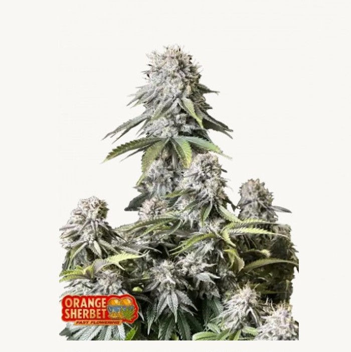 Orange Sherbet FF – FAST FLOWERING Fem, terpene super aspro, aromatizzato all’arancia.